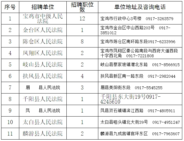 《寶雞法院2023年面向社會(huì)公開招聘聘用制書記員職位表》